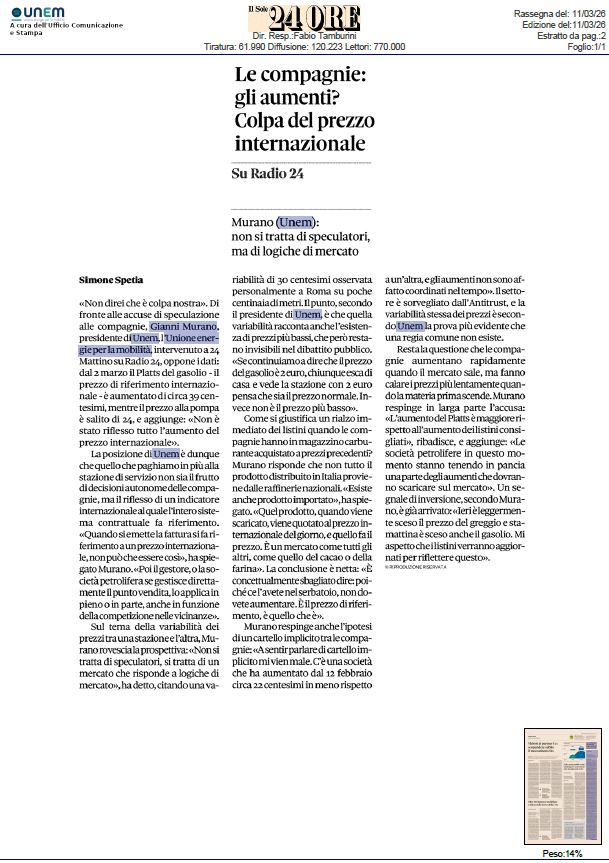 Su Radio 24 l’intervista di Simone Spetia al presidente Gianni Murano.