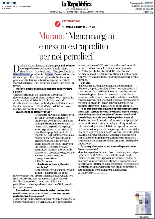 La Repubblica – Intervista a Gianni Murano 19.03.2026