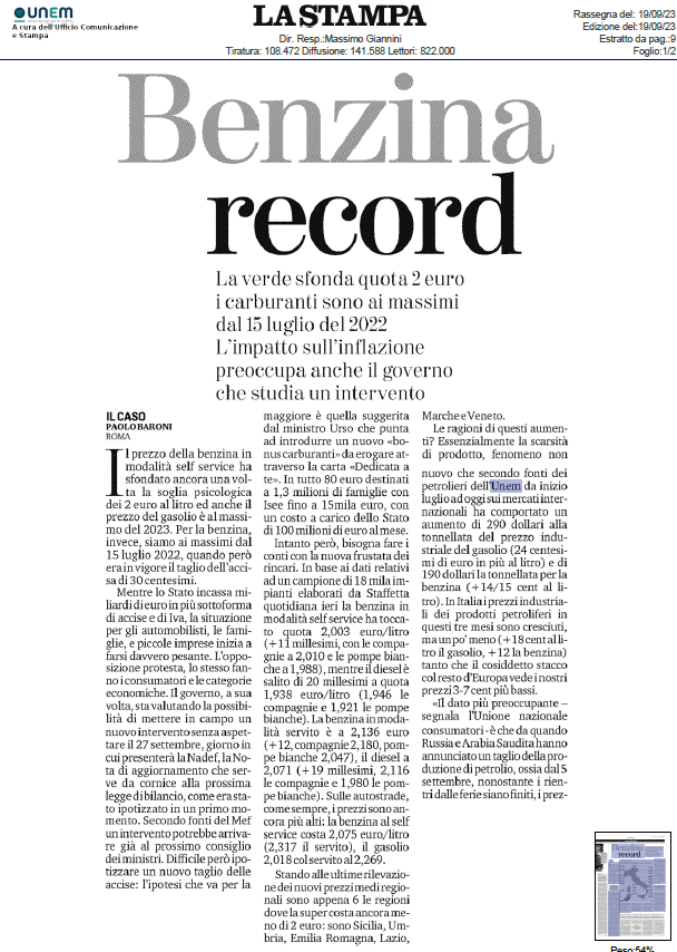 L’analisi di Paolo Baroni per la Stampa sui motivi alla base degli aumenti dei prezzi dei carburanti sulla base dei dati unem.